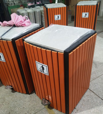 戶外腳踏式鋼木單桶垃圾桶工廠生產圖: