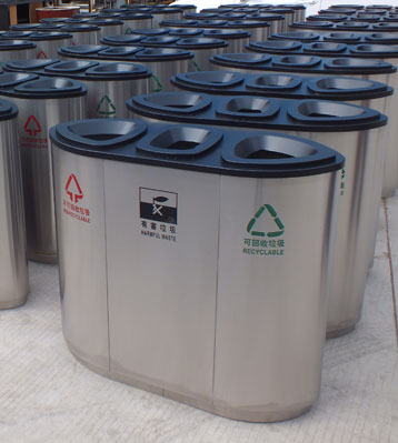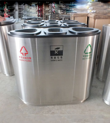 使用客戶:廣西南寧商場物業不銹鋼三分類垃圾桶 發布時間:2018-08-08