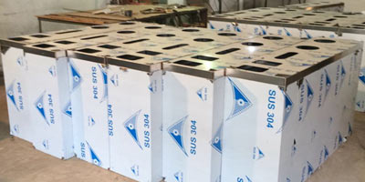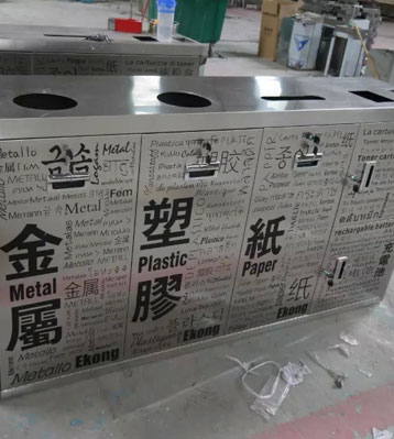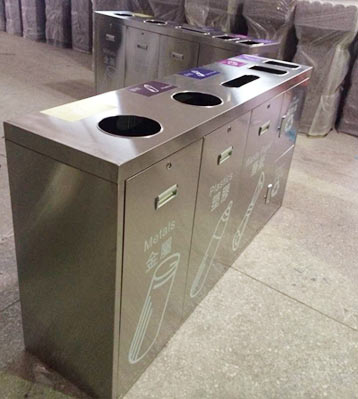 欣方圳不銹鋼五分類環(huán)保回收箱批量生產(chǎn)圖