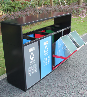 戶外4分類垃圾桶批量生產圖