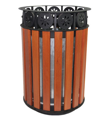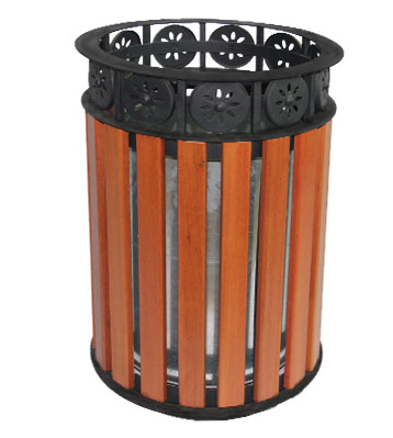欣方圳公園花邊鋼木單桶垃圾桶產(chǎn)品展示圖