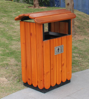 欣方圳木屋鋼木單桶垃圾桶廠家批量生產(chǎn)圖