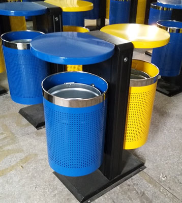 欣方圳戶外鋼板分類垃圾桶工廠批量生產圖
